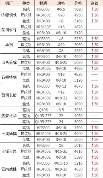 上調7家,占比70%,調價幅度30-50元/噸;