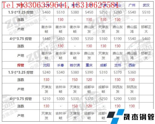 全國15個主要市場4寸*3.75 焊管平均價格5335元/噸,較上個交易日上調18元/噸。
