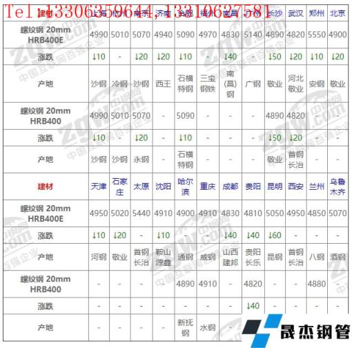 全國10個主要市場螺紋鋼 20mm HRB400平均價格4937元/噸,較上個交易日下調15元/噸。