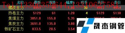 今日螺紋主力期貨漲49,收報4953,漲幅1%;熱卷主力漲61,收報5129,漲幅1.2%;焦煤主力漲155,收報3051,漲幅5.35%;焦炭主力漲135,收報3691,漲幅3.8%;鐵礦石主力漲28.5,收報833.5,漲幅3.54%。